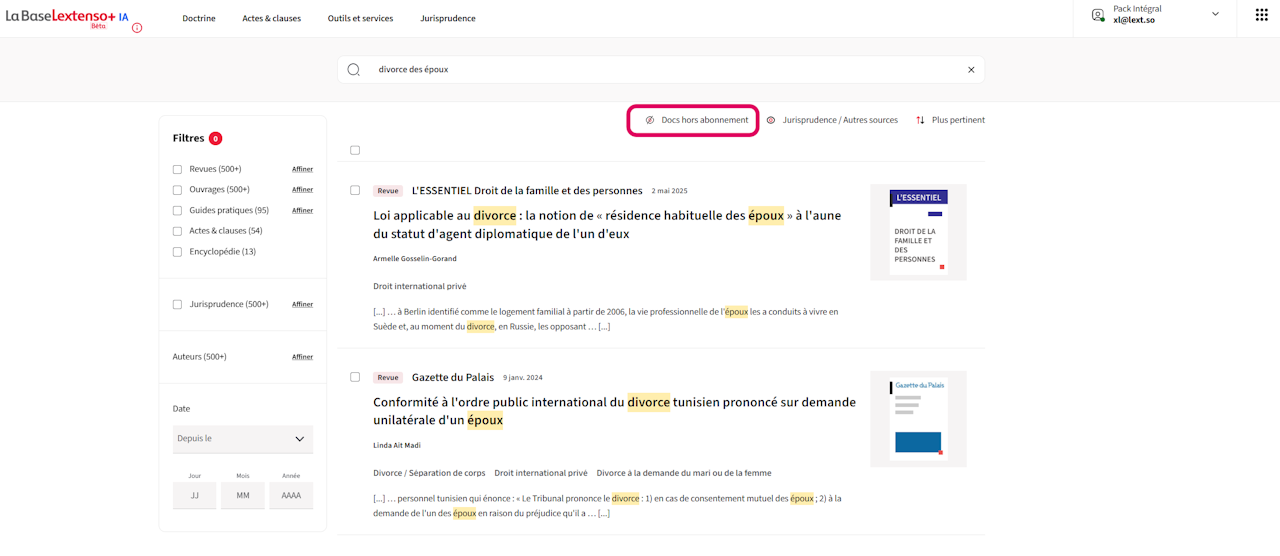 Pensez à élargir votre recherche en sélectionnant le filtre « Docs hors abonnement ».